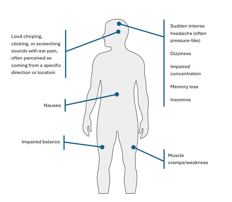 Recorded symptoms of Havana Syndrome. [source, source, source]